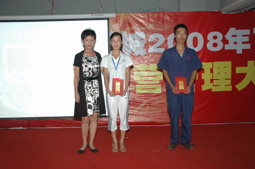 表彰大会首先对获得“优秀员工奖”、“管理奖”、“团队鼓励奖”和“精英团队奖”的24个优秀个人和3个先进团队予以表彰。在欢快激昂的音乐声中,与会领导为受表彰的个人和团队颁发证书。“爱岗敬业奖”获得者朱春华,“精英团队奖”获得部门员工代表杨学典在会上代表受表彰的个人和团队发言。