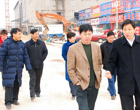 在华中项目施工现场,鑫山公司党总支书记、董事长朱铁玉同志,详细介绍了目前工程进展状况,并对区领导在百忙之中,亲临施工现场指导工作表示感谢。