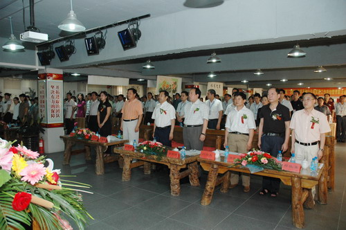 另讯,6月28日,2008年上半年鑫山公司党建工作总结暨表彰大会在凤凰城商务会所隆重召开。大会对2个先进党小组、3名党务先进工作者、10个党员模范示范店、17名优秀党员作出表彰,授予荣誉称号,并颁发荣誉证书和奖杯,先进党小组组长代表段伟作了典型发言。河南省委宣传部原常务副部长常有功、中共郑州市金水区统战部副部长张怀武、中共郑州市工商局建材分局党总支书记黄祥清等领导出席了大会,并对鑫山公司党建工作所取得的成绩给予了充分肯定。