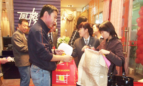 凤凰城名优建材市场团购中心组织的进百人的团购队伍,一早进入布艺卖场,卖场和商户联合为大家准备了“喜从天降”的活动,无数彩色气球从天而降,无数大礼均藏在里面。