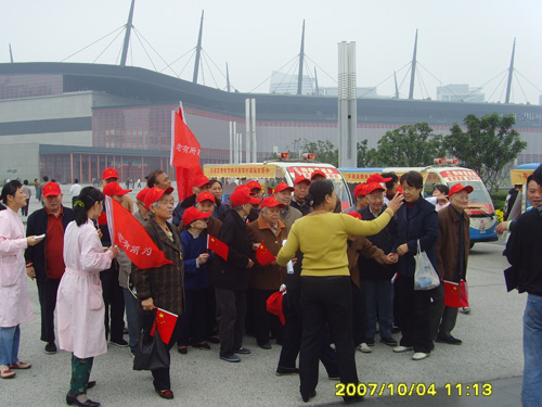 10月4日一大早,凤凰城名优建材市场的工作人员就开着免费直通车到了到了管城区老年公寓,与这里居住的60多位老人一起欢度节日,庆祝祖国58岁华诞。随后,工作人员开着凤凰城的免费直通车,带着平均年龄79岁的老人沿二七广场、金水大道一直到郑东新区游玩了一圈。平时足不出户的老人们,坐上环保、便捷的观光车,煞是兴奋。处处花团锦簇、彩旗飘飘,一路好风光让老人们目不暇接。