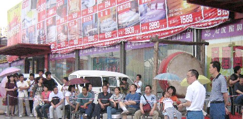 早上9点,在凤凰城客户服务中心就有一条长长的队伍,足足有五百人。记者上前一问,原来他们都是参加“满2000返现100”的活动。