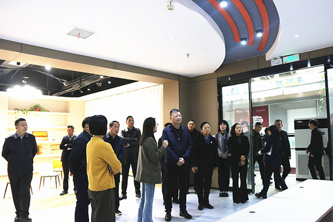调研组一行了解凤凰城科技创新产业集聚区,以及企业转型升级发展概况。李雯主任重点介绍了凤凰城因地制宜、发展数字经济、通过房产分割盘活资产、稳市场、稳就业、增加税收、推进共同富裕的具体实践。