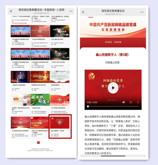 近日,河南鑫山党委报送的“鑫山党建数字人微党课”第五期内容,入选中国共产党新闻网全国精品微党课,入选类别为公开课。