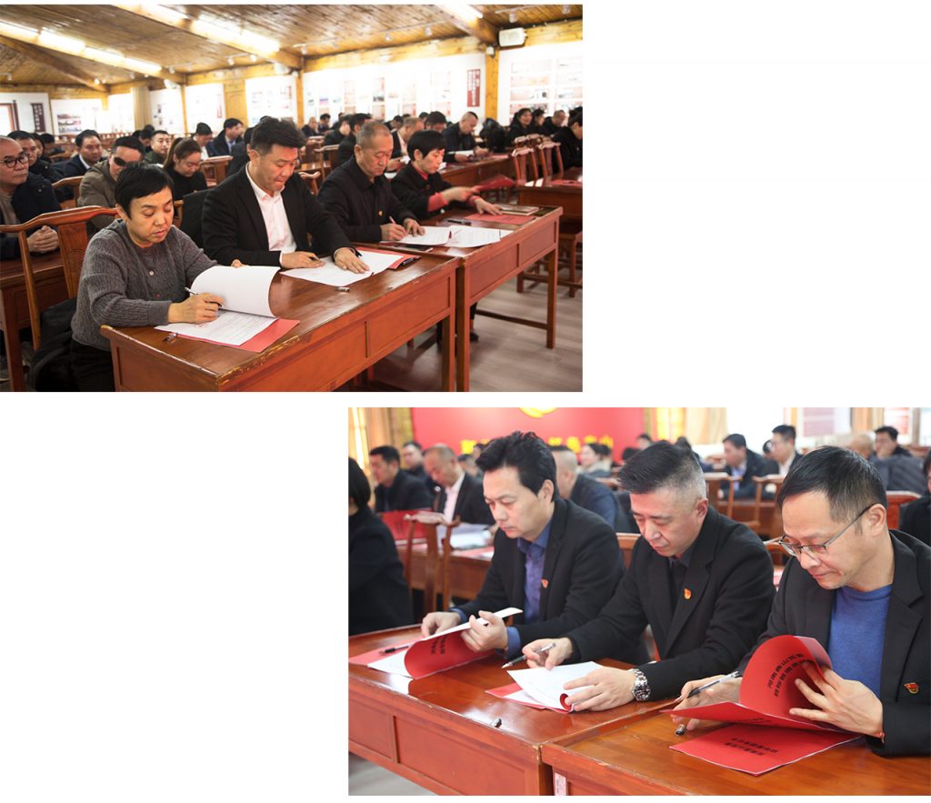 表彰环节,主持人宣读表彰决定。对10名优秀党员、5名优秀党务工作者、2个优秀党支部、5家优秀党员示范店予以表彰,颁发荣誉证书和奖品。随后,企业党委领导班子成员和各支部书记现场签订了《河南鑫山党委2026年度目标管理责任书》,明确年度目标、压实工作责任,为2026年党建工作有效开展做好机制保障。