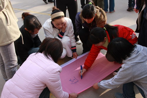 活动通过“激情节拍”、“流动智慧”、“风火轮”等几个游戏开展起来。“激情节拍”由集体到小组,由小组再到集体,有压力、亦有动力,鑫山的女子团队在为集体的荣誉专心致志的努力,“1、2、3、4、5、6、7、8,我们是最棒的团队……”